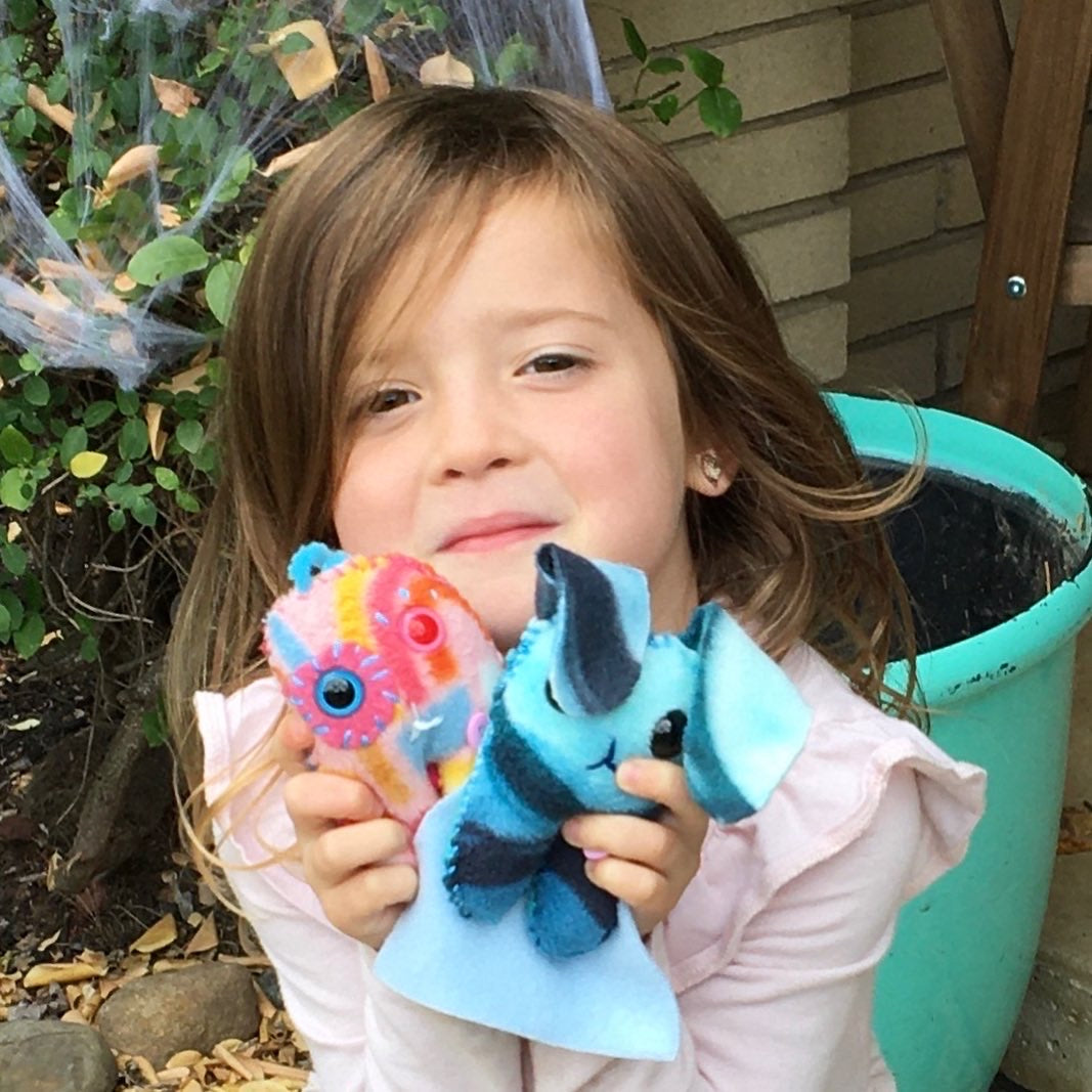 Monsters Made with Love Monster Kits are great for people ages 5 to 105, all genders and sewing levels.  Adult involvement is recommended or those under the age of 10.